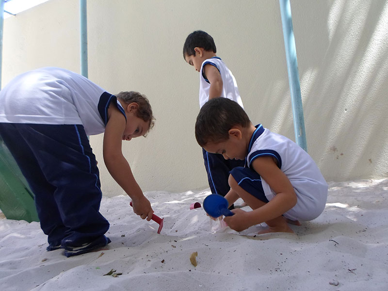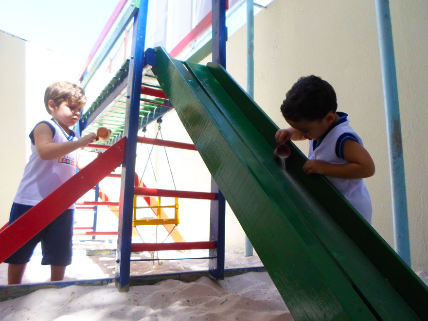 Esse ano, com a ampliação do parque de areia do pátio das árvores, os alunos dos Maternais II e Jardins I se divertem por meio de atividades e brincadeiras ao ar livre.
