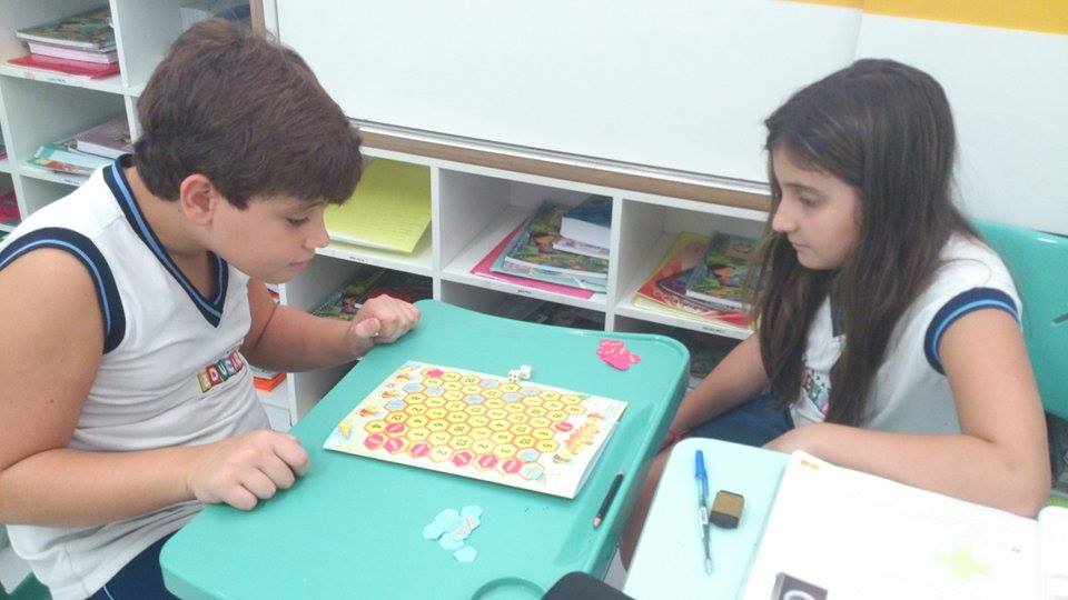 No Espaço Educar as crianças aprendem desde a Educação Infantil ao 5º ano do Ensino Fundamental a se apropriarem de conceitos importantes utilizando diversos recursos, tais como: materiais manipulativos (material dourado, ábaco, escala de cuisenaire, tangram etc) e muitos jogos. Durante os jogos as crianças podem colocar em prática sua capacidade de resolver situações problemas, buscando estratégias próprias. Além disso, as crianças têm a oportunidade de socializar com os amigos, buscando cooperação mútua e trabalho em equipe. E para que isso aconteça o professor precisa propor jogos interessantes e desafiadores.