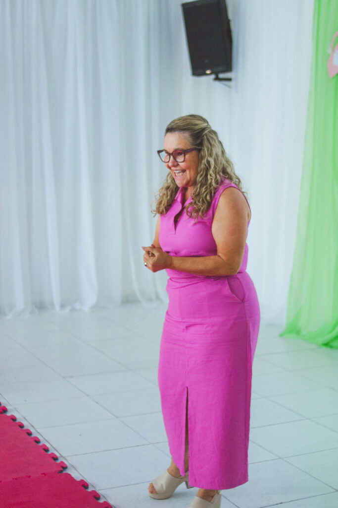 Em seguida, a diretora pedagógica, Conceição Azevedo, provocou reflexões com o tema “Entre o ser e o fazer: encontrando equilíbrio nos múltiplos papéis da mulher“. Em um mundo que constantemente exige que a mulher seja muitas ao mesmo tempo (profissional, mãe, filha, esposa, amiga). Conceição trouxe uma reflexão sobre o desafio de não se perder na correria do cotidiano. Com dicas de como administrar o tempo e organizar a rotina, o bate-papo foi um convite à autorreflexão: como equilibrar tantas funções sem se esquecer da própria essência?